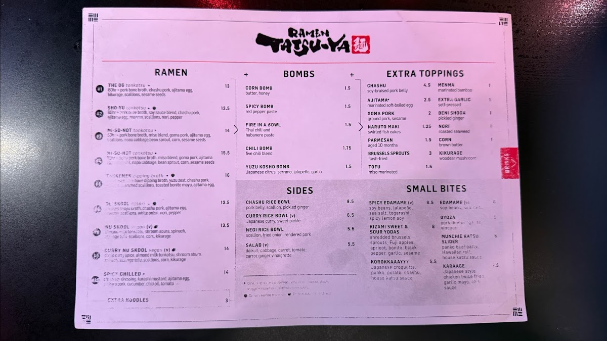 Welcome to Ramen Tatsu-Ya in Austin, a beloved culinary gem nestled at 1234 S Lamar Blvd. Known for its vibrant atmosphere and efficient ordering system, this spot brings the authentic flavors of Japan to Texas. The menu features a stellar array of ramen options, including the rich #2 Shoyu pork bone broth and the delicate #6 OL' SKOOL chicken shoyu broth. Each bowl is a celebration of flavor, complemented by perfect noodles and flavorful toppings like ajitama egg and nori.